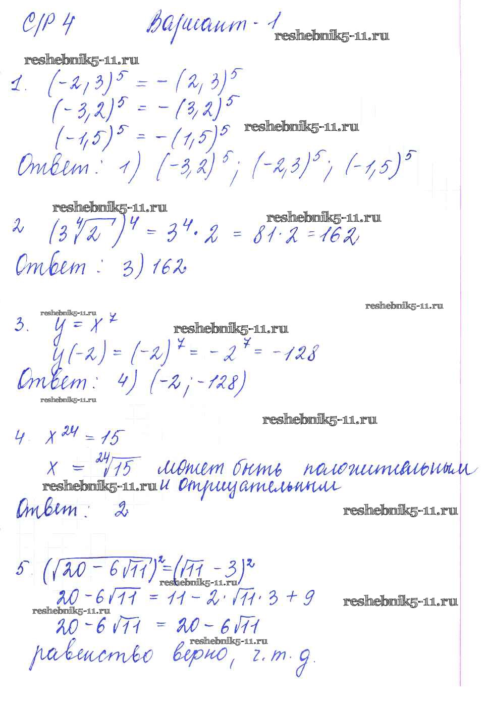 Готовая домашняя работа с ответами по Алгебре за 9 класс Глазков, Варшавский, Гаиашвили Самостоятельные и контрольные работы УМК Экзамен 2013 ФГОС - СР-4. Степенная функция. Корень n-й степени вариант 1