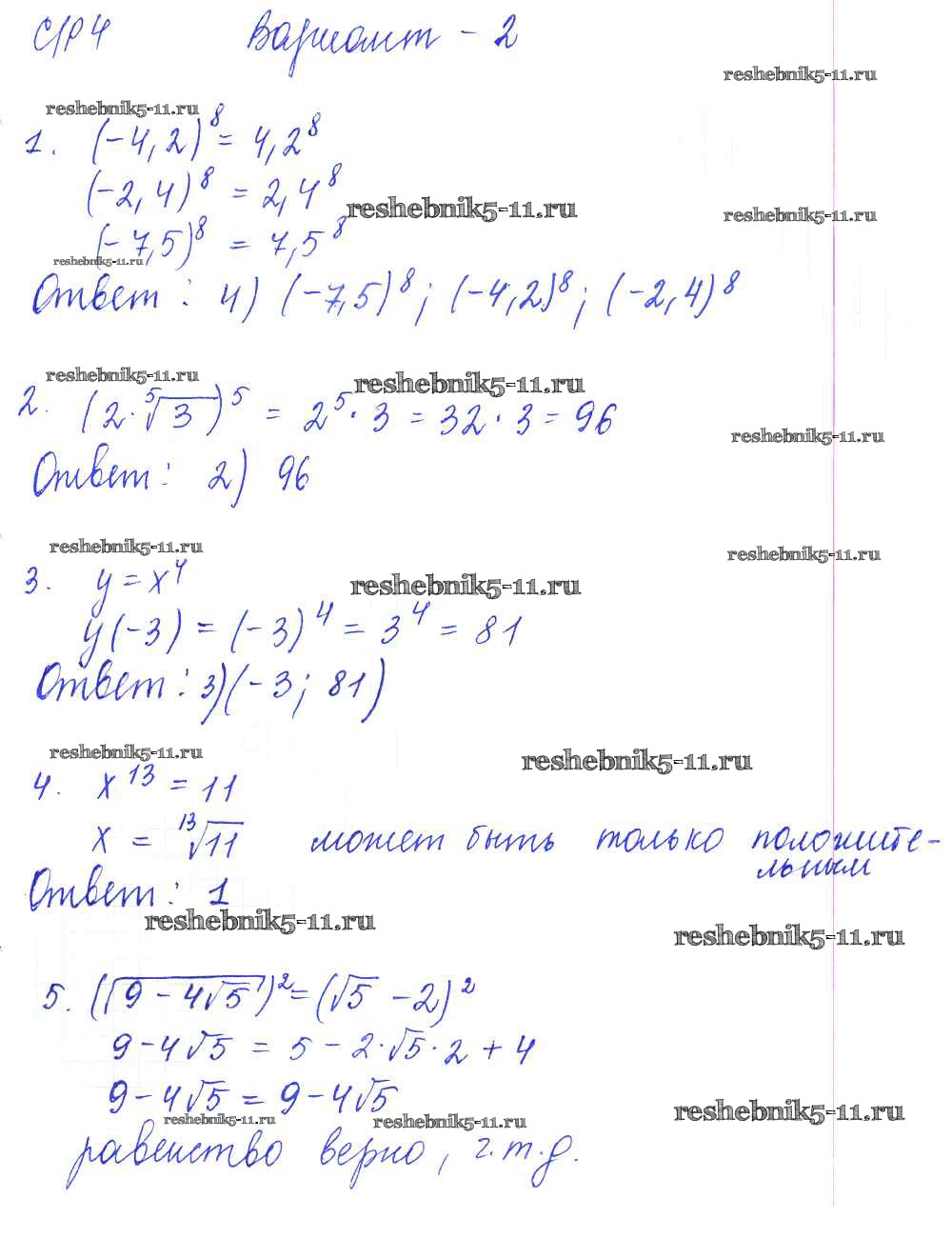 Готовая домашняя работа с ответами по Алгебре за 9 класс Глазков, Варшавский, Гаиашвили Самостоятельные и контрольные работы УМК Экзамен 2013 ФГОС - СР-4. Степенная функция. Корень n-й степени вариант 2