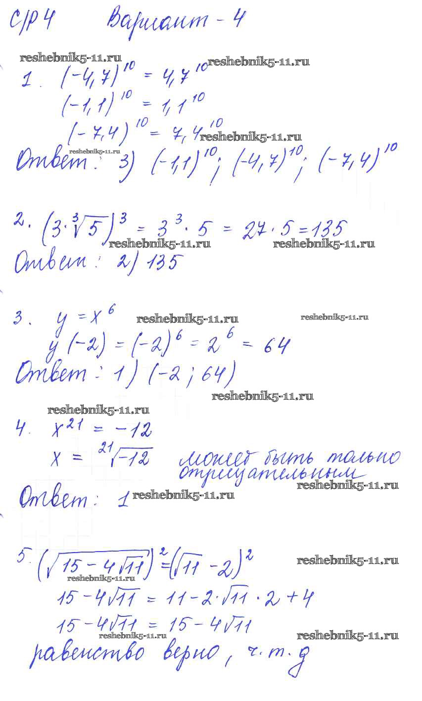 Готовая домашняя работа с ответами по Алгебре за 9 класс Глазков, Варшавский, Гаиашвили Самостоятельные и контрольные работы УМК Экзамен 2013 ФГОС - СР-4. Степенная функция. Корень n-й степени вариант 4