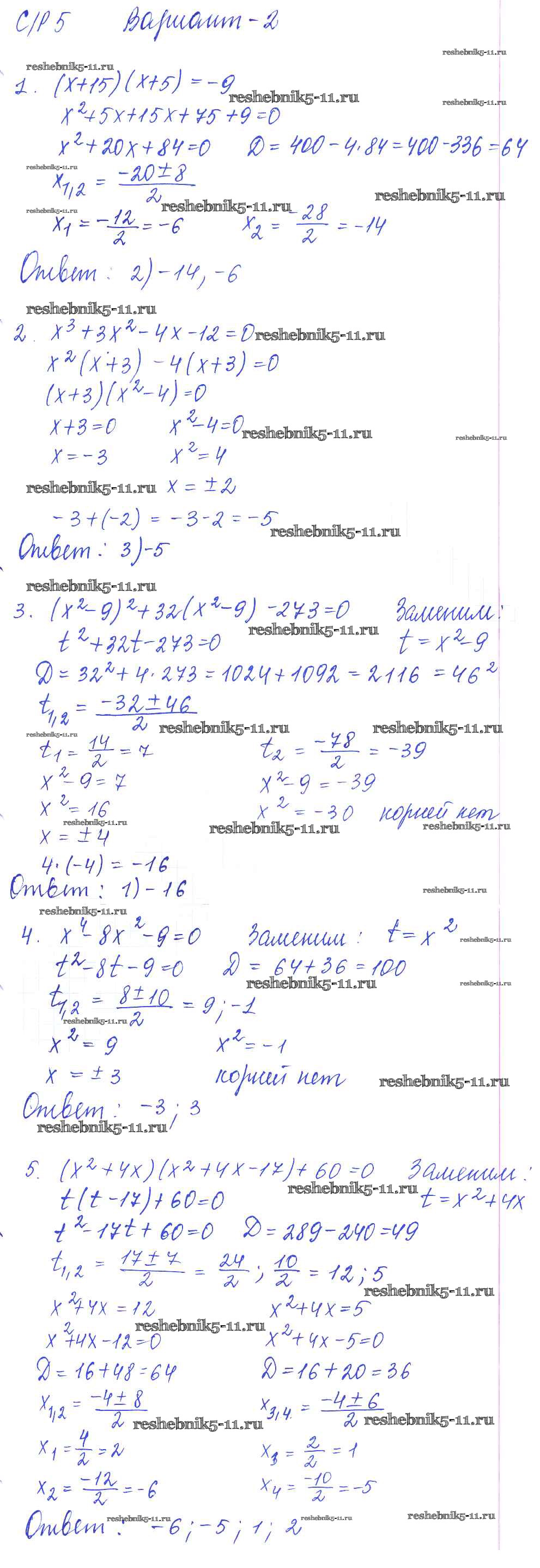 Готовая домашняя работа с ответами по Алгебре за 9 класс Глазков, Варшавский, Гаиашвили Самостоятельные и контрольные работы УМК Экзамен 2013 ФГОС - СР-5. Уравнения с одной переменной вариант 2