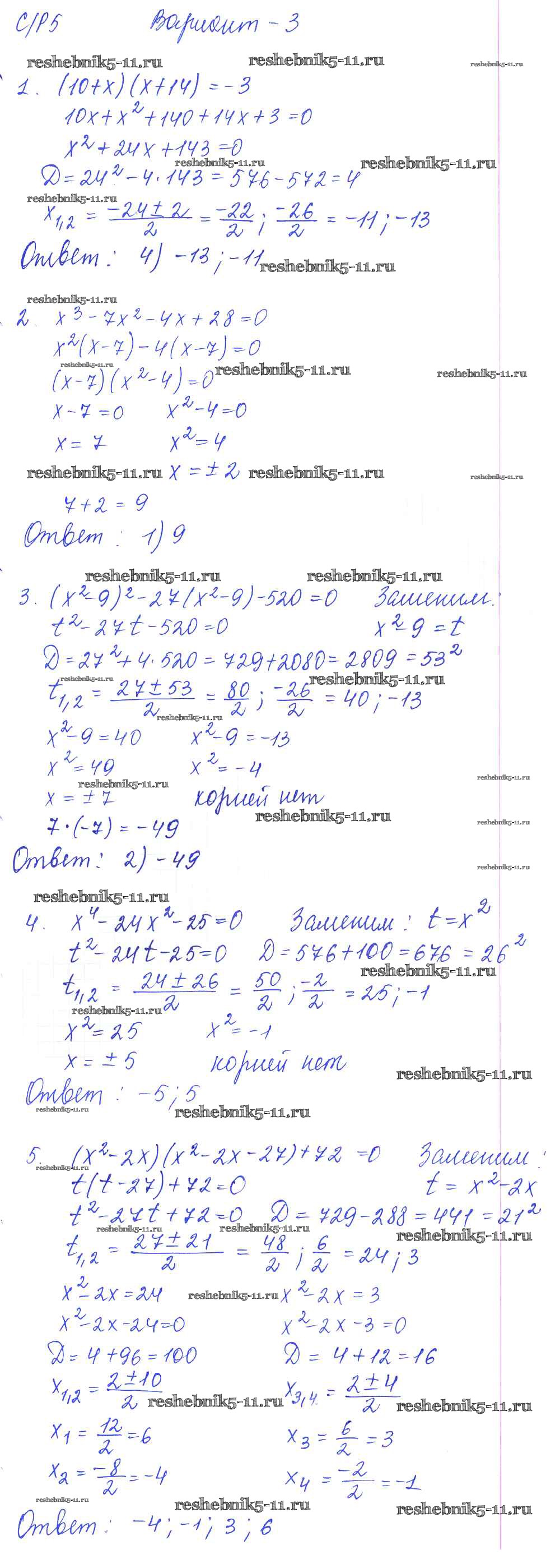 Готовая домашняя работа с ответами по Алгебре за 9 класс Глазков, Варшавский, Гаиашвили Самостоятельные и контрольные работы УМК Экзамен 2013 ФГОС - СР-5. Уравнения с одной переменной вариант 3