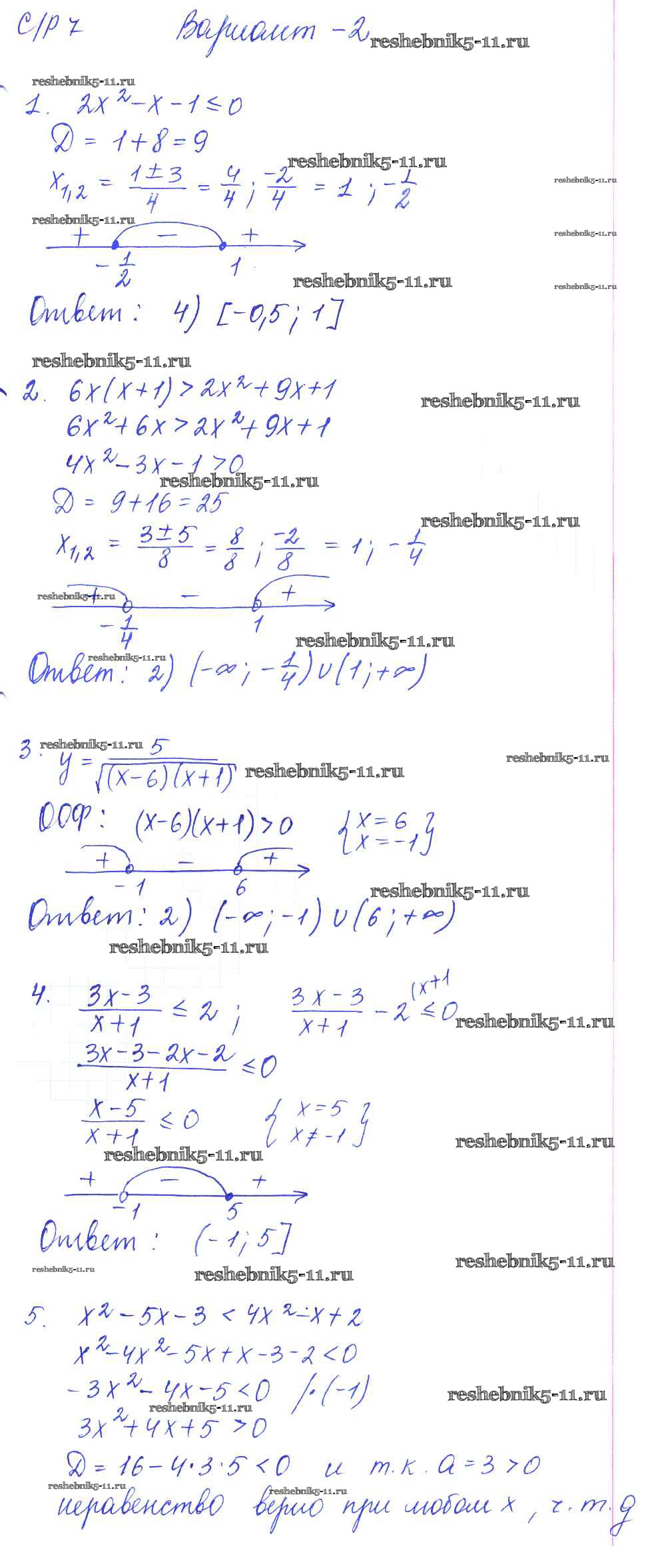 Готовая домашняя работа с ответами по Алгебре за 9 класс Глазков, Варшавский, Гаиашвили Самостоятельные и контрольные работы УМК Экзамен 2013 ФГОС - СР-7. Неравенства с одной переменной вариант 2