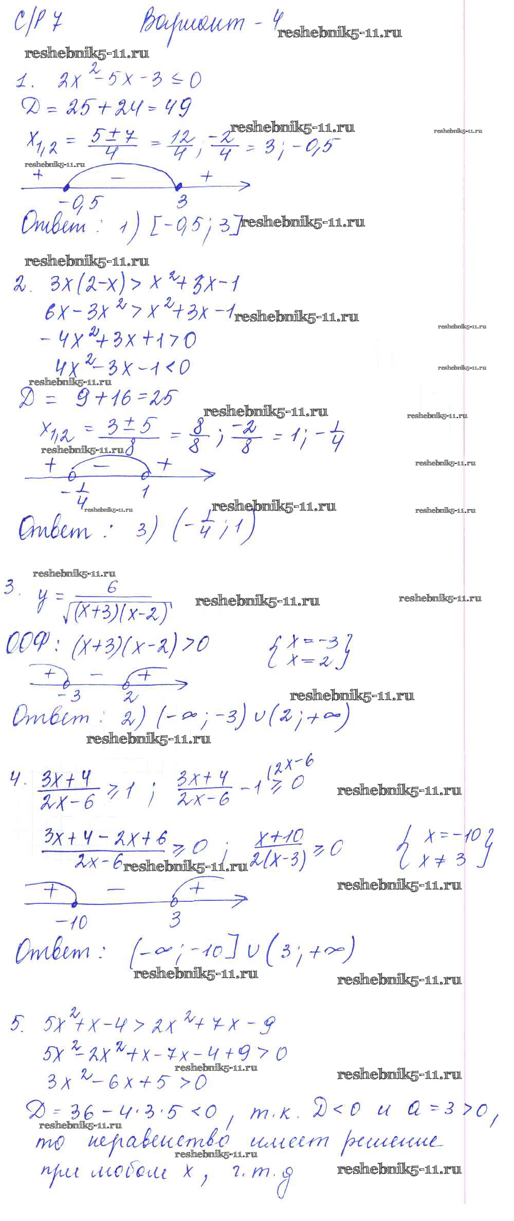 Готовая домашняя работа с ответами по Алгебре за 9 класс Глазков, Варшавский, Гаиашвили Самостоятельные и контрольные работы УМК Экзамен 2013 ФГОС - СР-7. Неравенства с одной переменной вариант 4