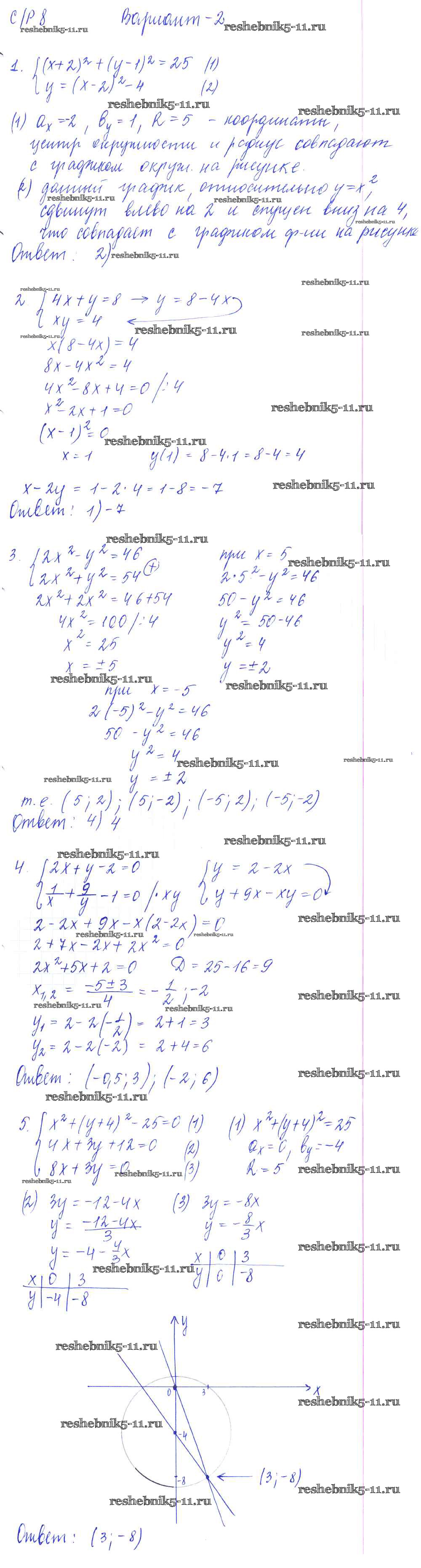 Готовая домашняя работа с ответами по Алгебре за 9 класс Глазков, Варшавский, Гаиашвили Самостоятельные и контрольные работы УМК Экзамен 2013 ФГОС - СР-8. Уравнения с двумя переменными и их системы вариант 2
