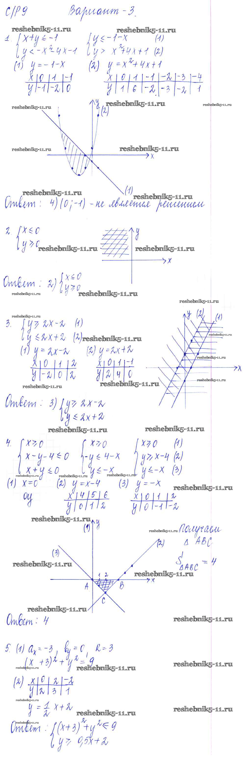 Готовая домашняя работа с ответами по Алгебре за 9 класс Глазков, Варшавский, Гаиашвили Самостоятельные и контрольные работы УМК Экзамен 2013 ФГОС - СР-9. Неравенства с двумя переменными и их системы вариант 3