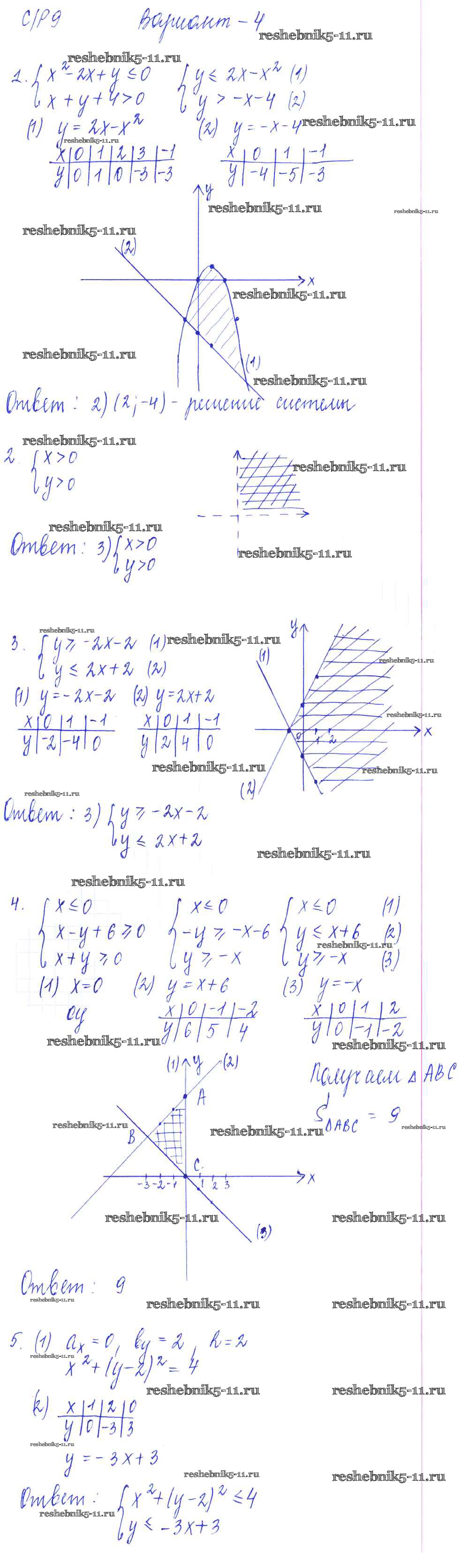 Готовая домашняя работа с ответами по Алгебре за 9 класс Глазков, Варшавский, Гаиашвили Самостоятельные и контрольные работы УМК Экзамен 2013 ФГОС - СР-9. Неравенства с двумя переменными и их системы вариант 4