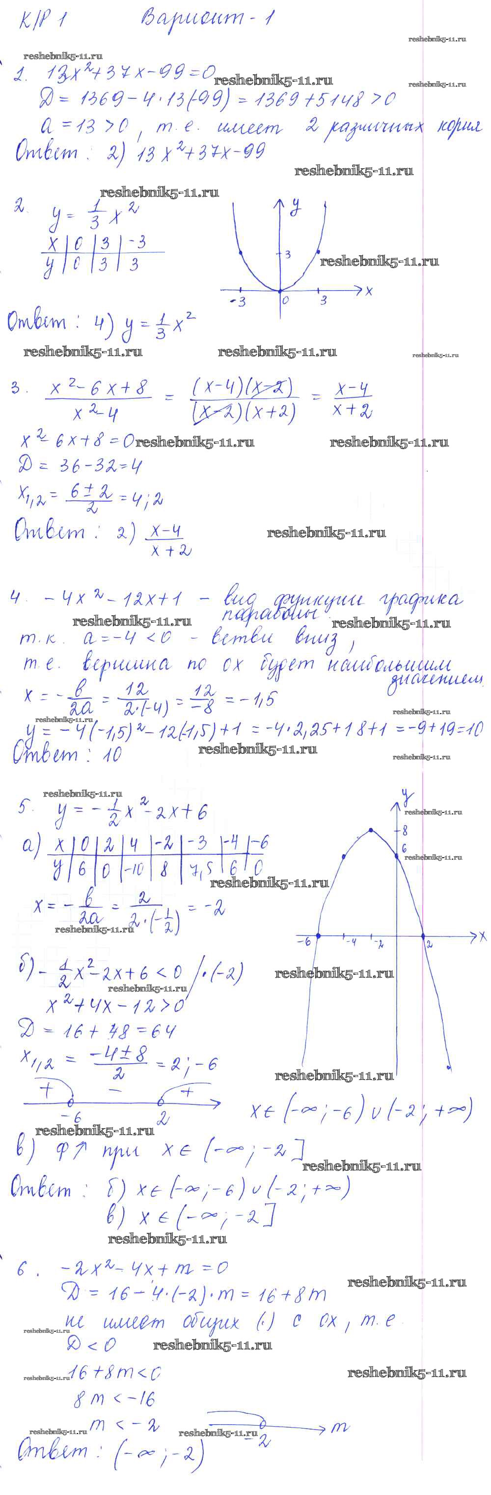 Готовая домашняя работа с ответами по Алгебре за 9 класс Глазков, Варшавский, Гаиашвили Самостоятельные и контрольные работы УМК Экзамен 2013 ФГОС - КР-1. Функции и их свойства. Квадратный трехчлен. Квадратичная функция и её график вариант 1