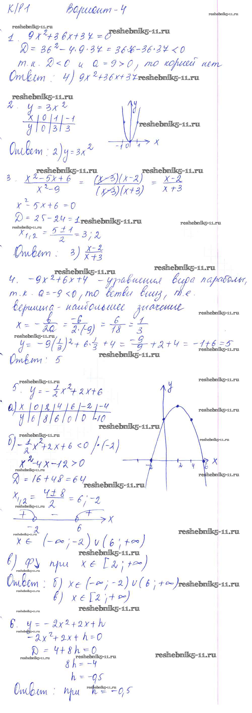 Готовая домашняя работа с ответами по Алгебре за 9 класс Глазков, Варшавский, Гаиашвили Самостоятельные и контрольные работы УМК Экзамен 2013 ФГОС - КР-1. Функции и их свойства. Квадратный трехчлен. Квадратичная функция и её график вариант 4