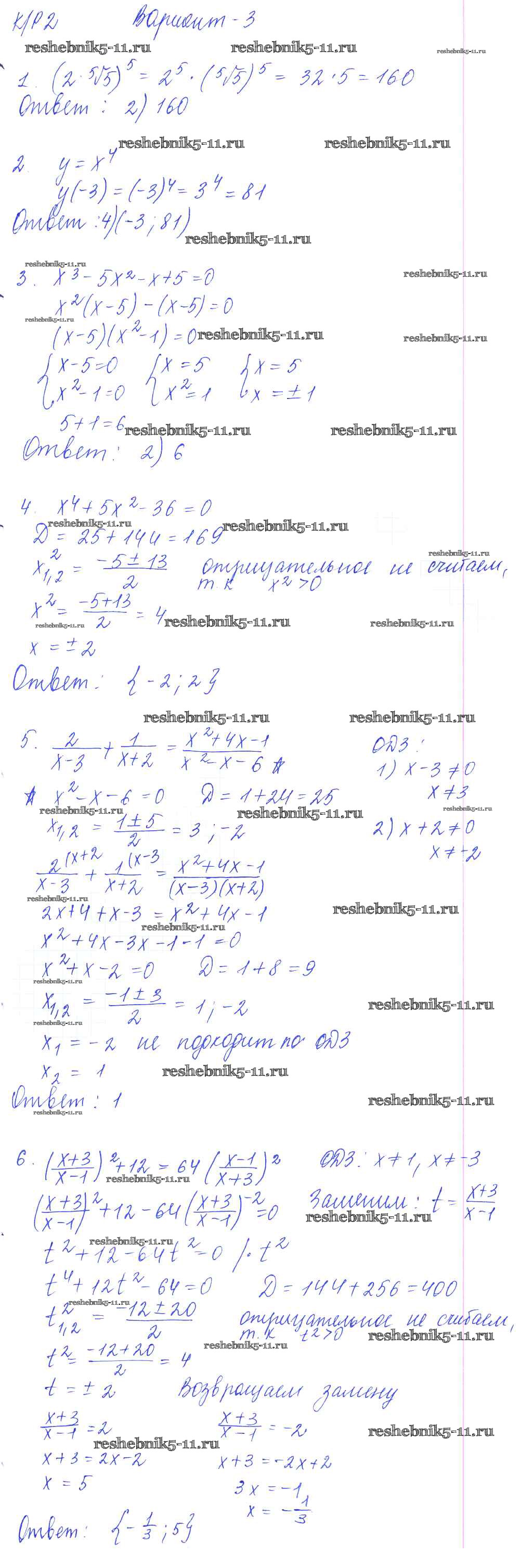 Готовая домашняя работа с ответами по Алгебре за 9 класс Глазков, Варшавский, Гаиашвили Самостоятельные и контрольные работы УМК Экзамен 2013 ФГОС - КР-2. Степенная функция. Корень n-й степени. Уравнения с одной переменной вариант 3