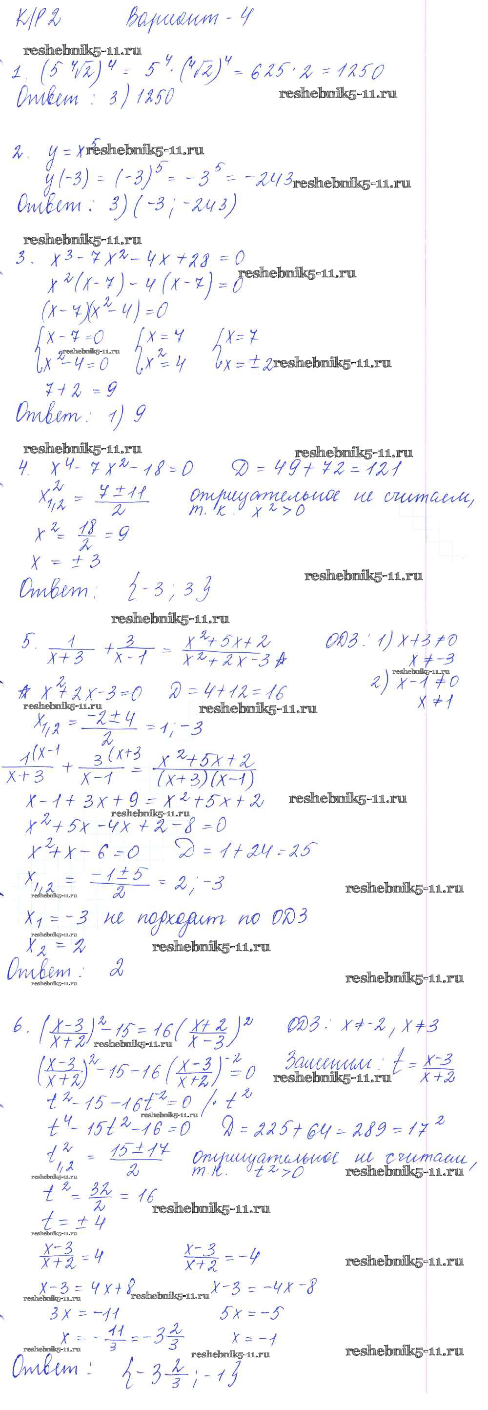 Готовая домашняя работа с ответами по Алгебре за 9 класс Глазков, Варшавский, Гаиашвили Самостоятельные и контрольные работы УМК Экзамен 2013 ФГОС - КР-2. Степенная функция. Корень n-й степени. Уравнения с одной переменной вариант 4