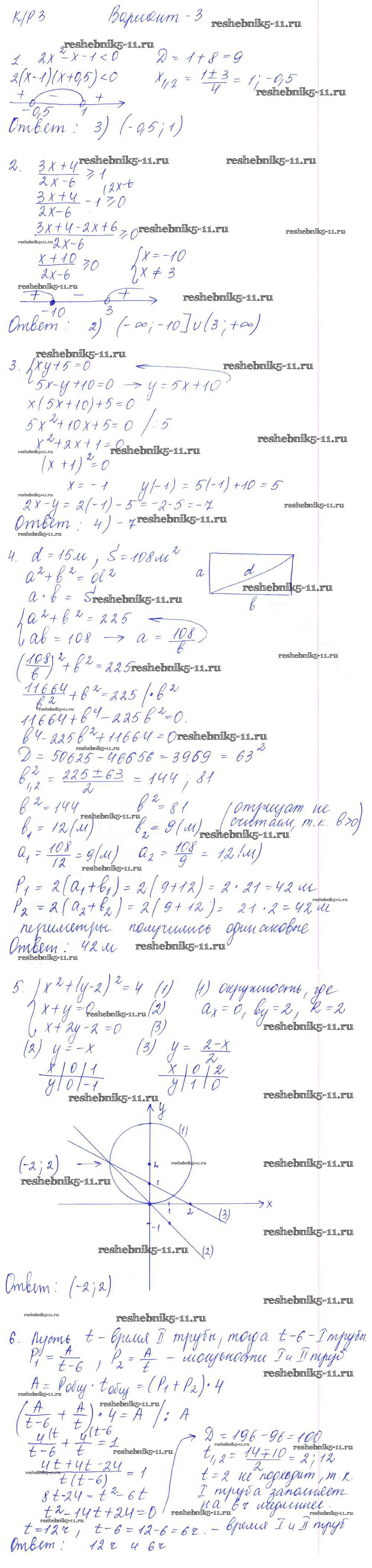 Готовая домашняя работа с ответами по Алгебре за 9 класс Глазков, Варшавский, Гаиашвили Самостоятельные и контрольные работы УМК Экзамен 2013 ФГОС - КР-3. Неравенства с одной переменной. Уравнения с двумя переменными и их системы вариант 3