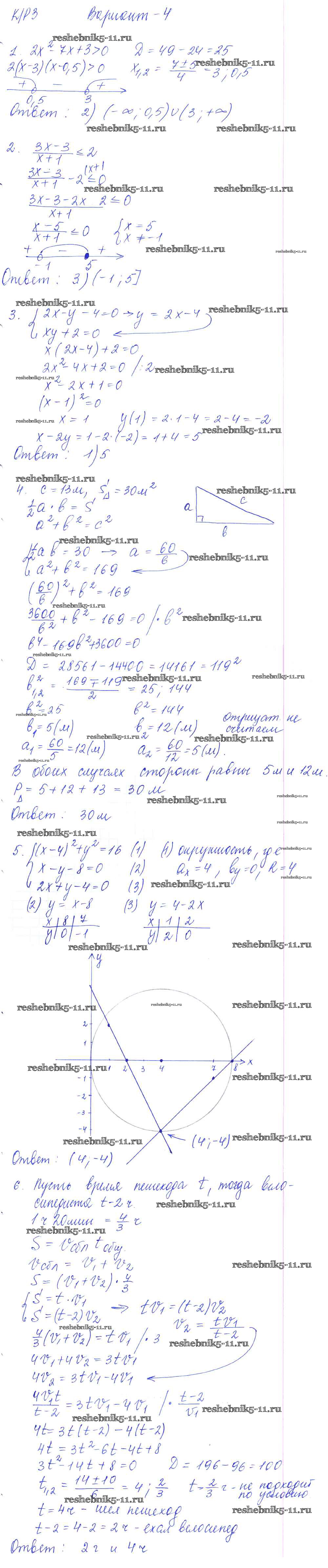 Готовая домашняя работа с ответами по Алгебре за 9 класс Глазков, Варшавский, Гаиашвили Самостоятельные и контрольные работы УМК Экзамен 2013 ФГОС - КР-3. Неравенства с одной переменной. Уравнения с двумя переменными и их системы вариант 4