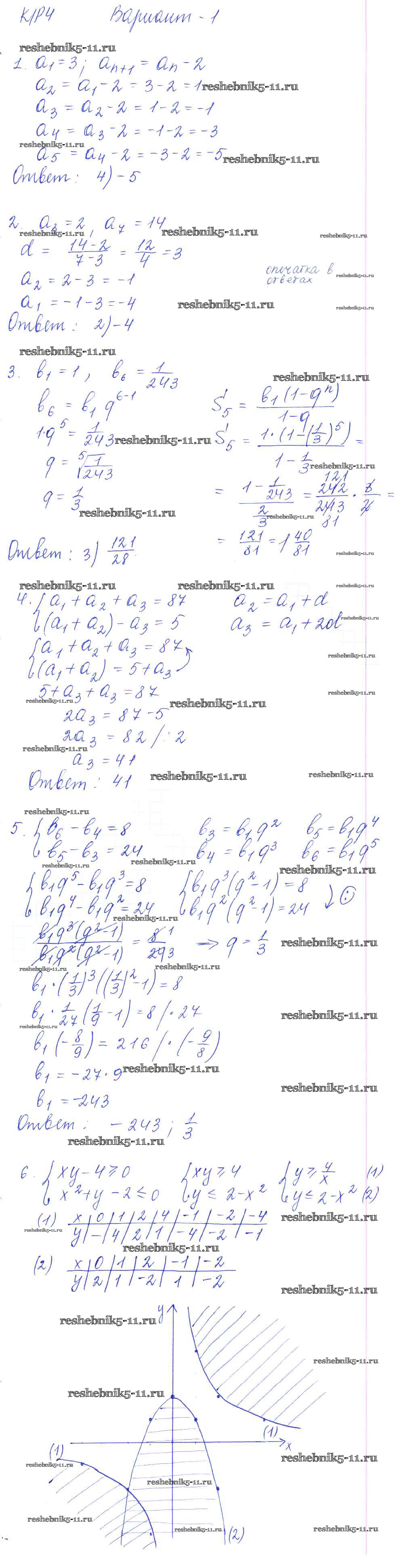 Готовая домашняя работа с ответами по Алгебре за 9 класс Глазков, Варшавский, Гаиашвили Самостоятельные и контрольные работы УМК Экзамен 2013 ФГОС - КР-4. Неравенства с двумя переменными и их системы. Арифметическая и геометрическая прогрессии вариант 1
