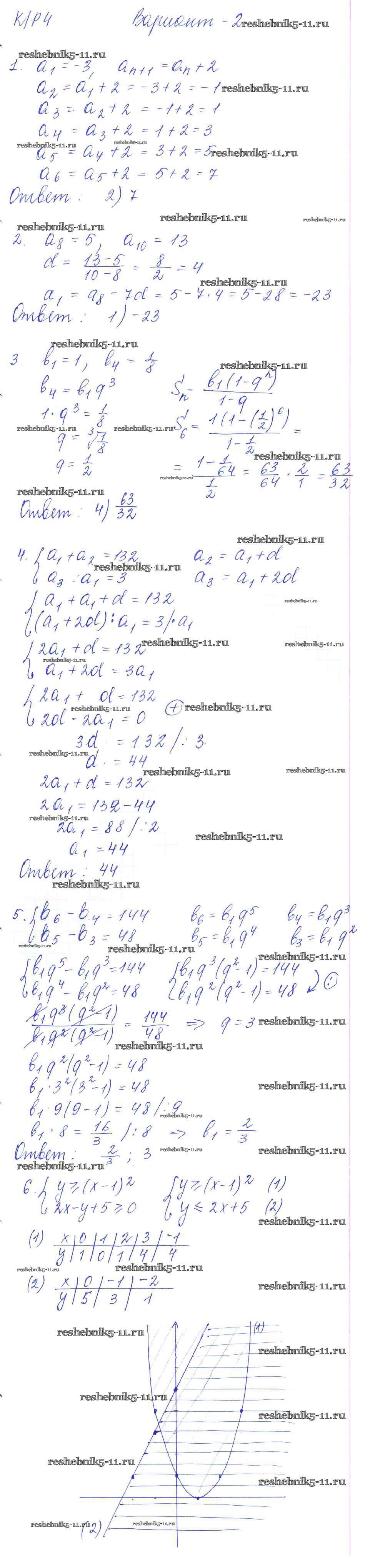 Готовая домашняя работа с ответами по Алгебре за 9 класс Глазков, Варшавский, Гаиашвили Самостоятельные и контрольные работы УМК Экзамен 2013 ФГОС - КР-4. Неравенства с двумя переменными и их системы. Арифметическая и геометрическая прогрессии вариант 2