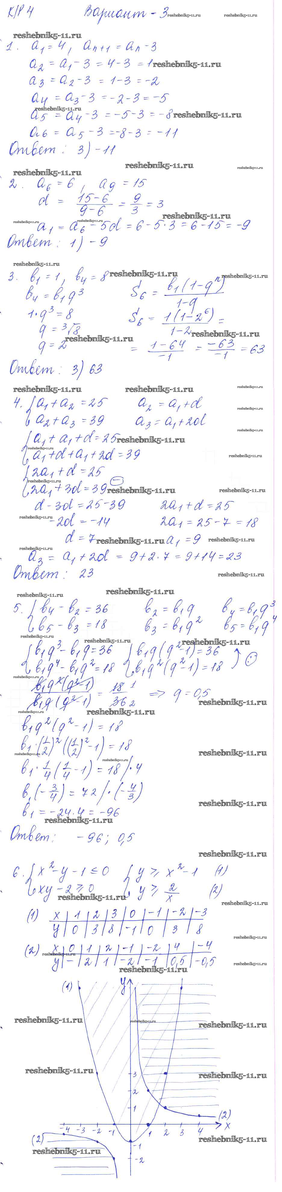 Готовая домашняя работа с ответами по Алгебре за 9 класс Глазков, Варшавский, Гаиашвили Самостоятельные и контрольные работы УМК Экзамен 2013 ФГОС - КР-4. Неравенства с двумя переменными и их системы. Арифметическая и геометрическая прогрессии вариант 3