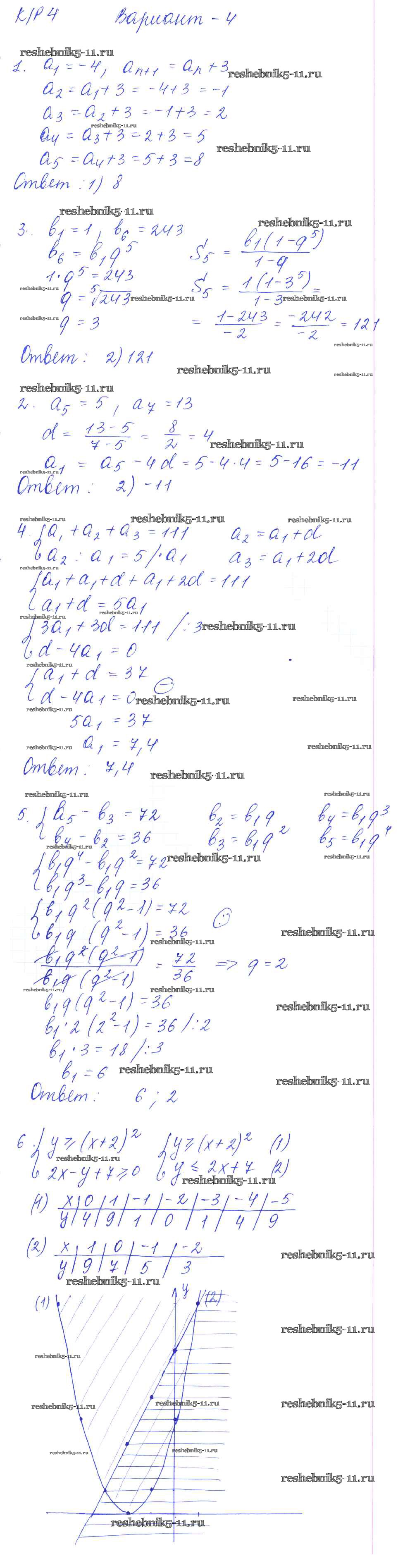 Готовая домашняя работа с ответами по Алгебре за 9 класс Глазков, Варшавский, Гаиашвили Самостоятельные и контрольные работы УМК Экзамен 2013 ФГОС - КР-4. Неравенства с двумя переменными и их системы. Арифметическая и геометрическая прогрессии вариант 4