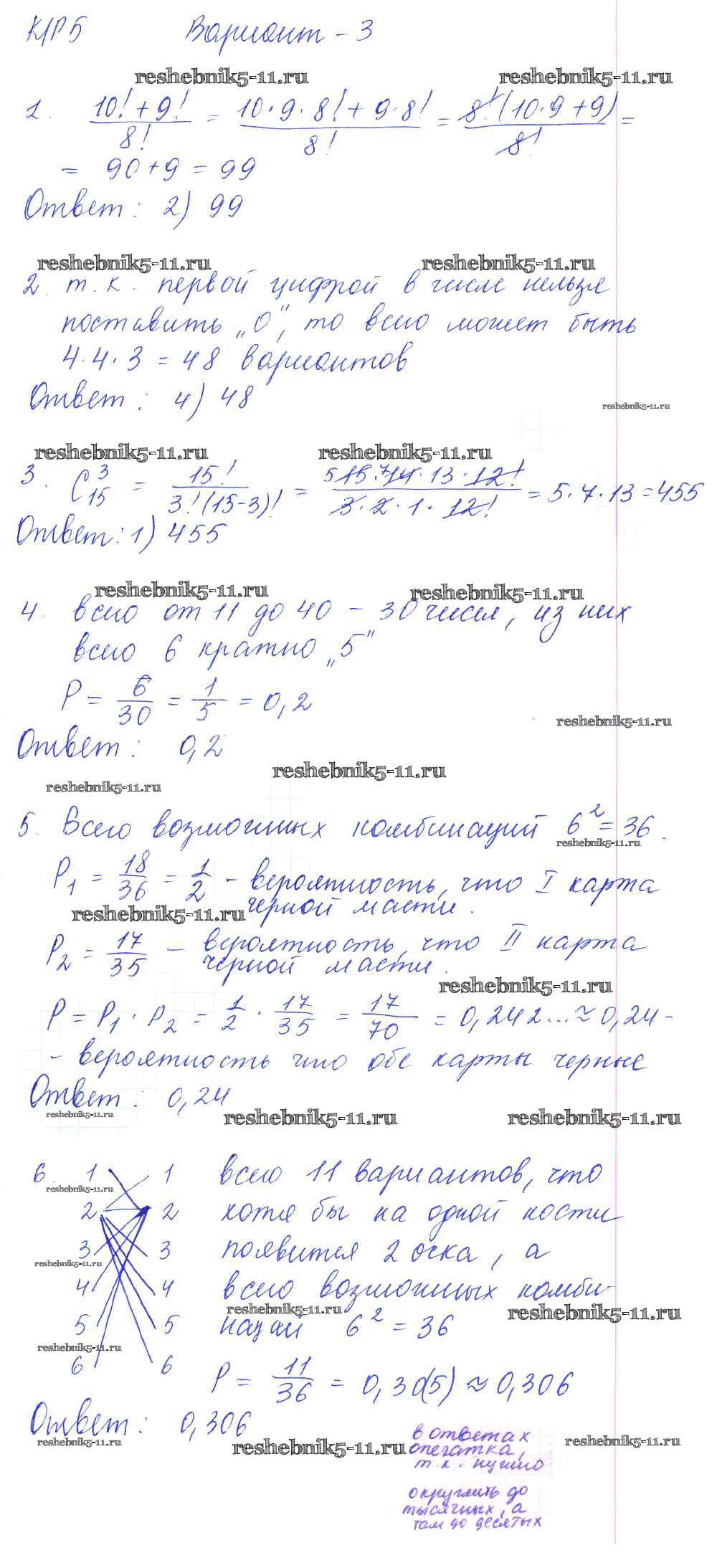 Готовая домашняя работа с ответами по Алгебре за 9 класс Глазков, Варшавский, Гаиашвили Самостоятельные и контрольные работы УМК Экзамен 2013 ФГОС - КР-5. Элементы комбинаторики и теории вероятностей вариант 3