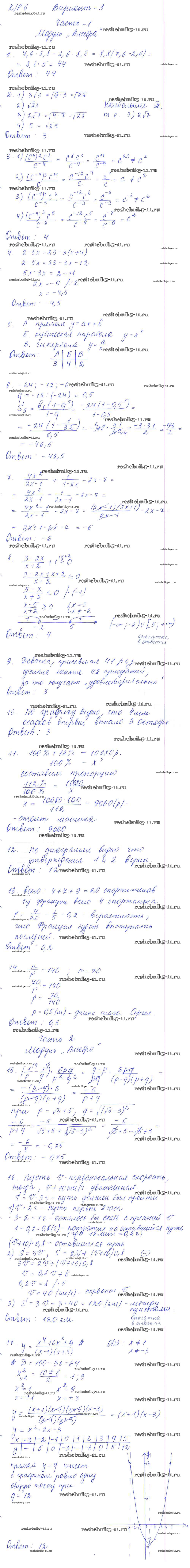 Готовая домашняя работа с ответами по Алгебре за 9 класс Глазков, Варшавский, Гаиашвили Самостоятельные и контрольные работы УМК Экзамен 2013 ФГОС - КР-6. В формате ГИА вариант 3