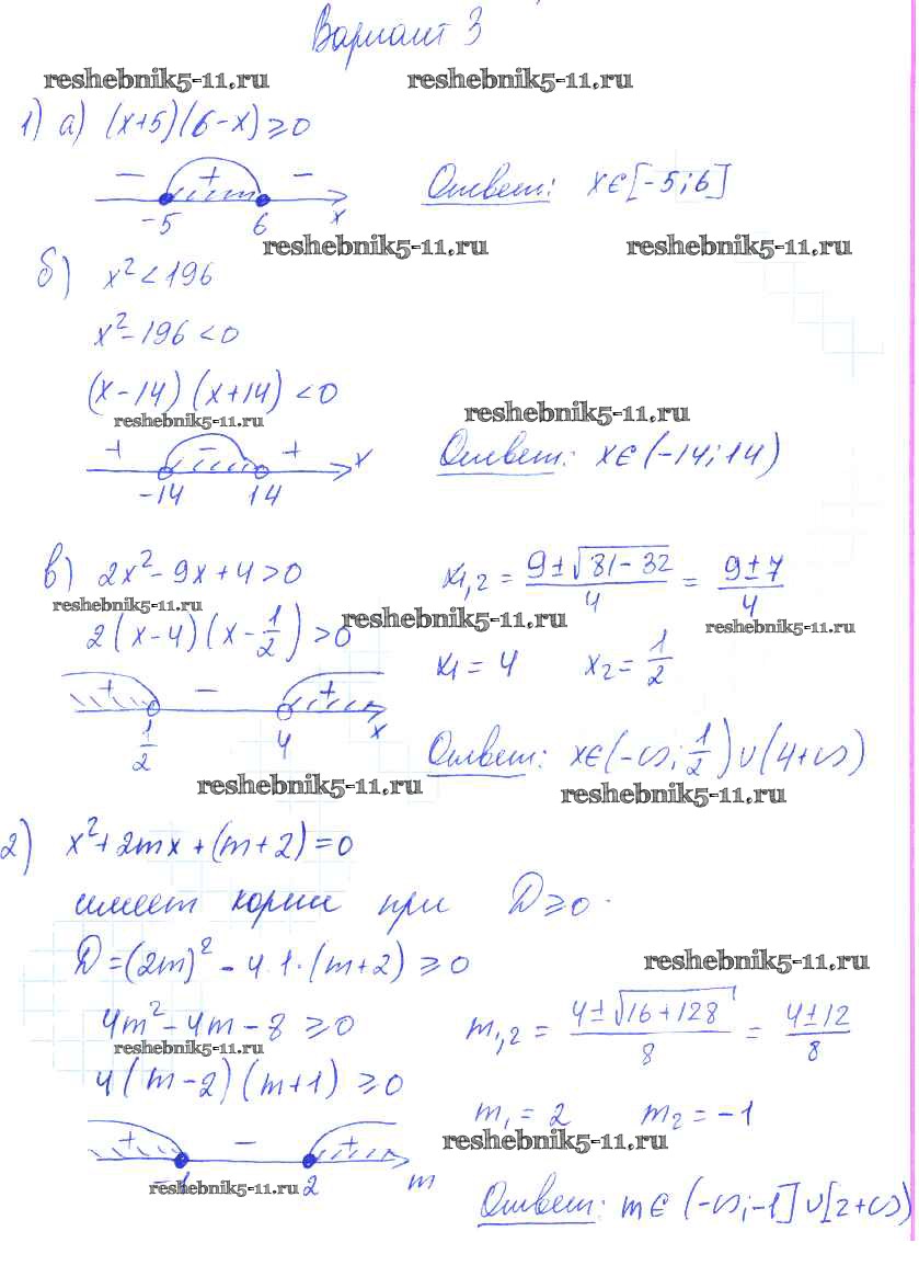 Готовая домашняя работа с ответами по Алгебре за 9 класс Александрова Самостоятельные работы УМК Базовый уровень Мнемозина 2016 ФГОС - СР-2. Рациональные неравенства вариант 3