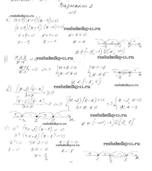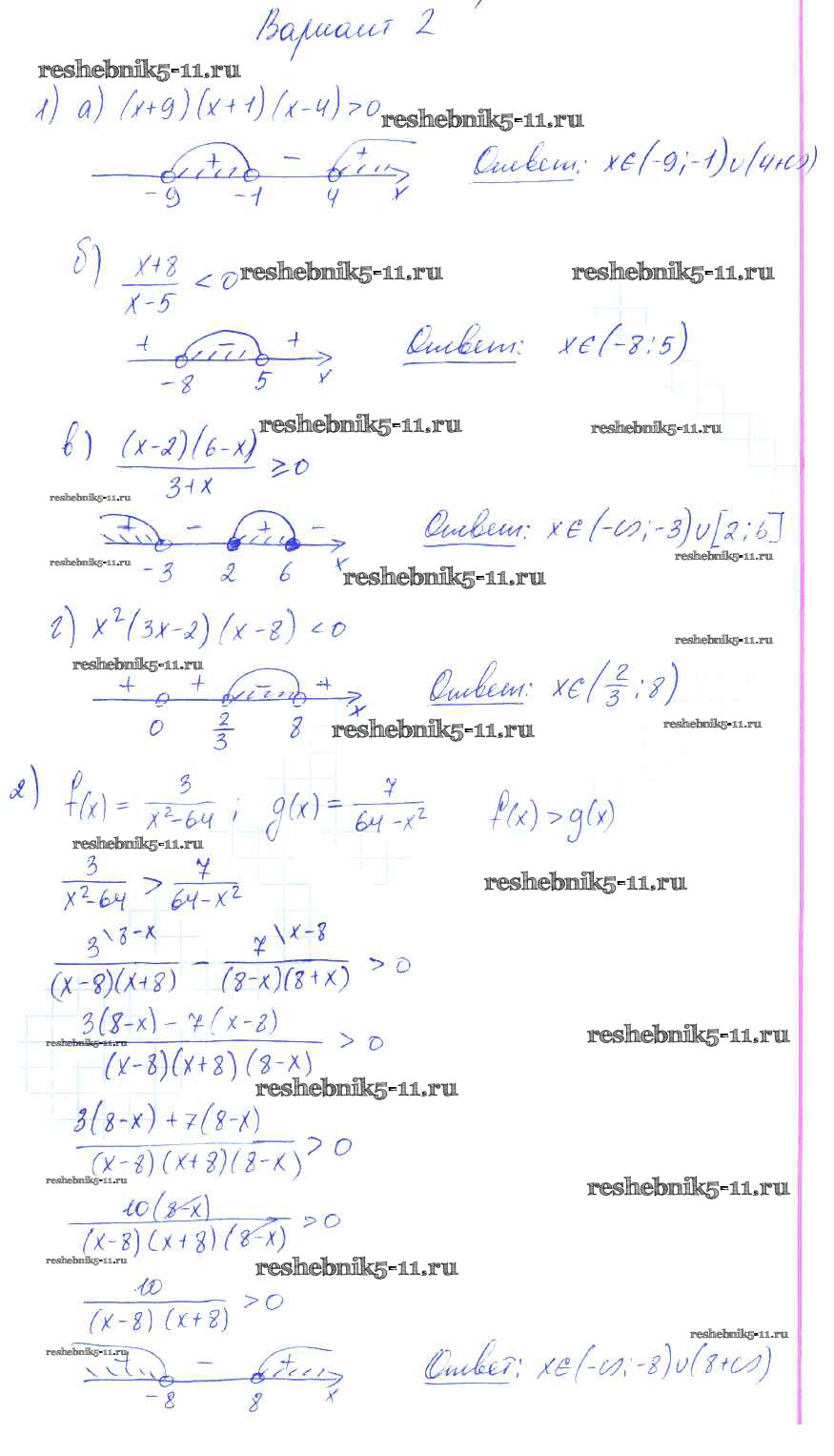 Готовая домашняя работа с ответами по Алгебре за 9 класс Александрова Самостоятельные работы УМК Базовый уровень Мнемозина 2016 ФГОС - СР-3. Рациональные неравенства вариант 2