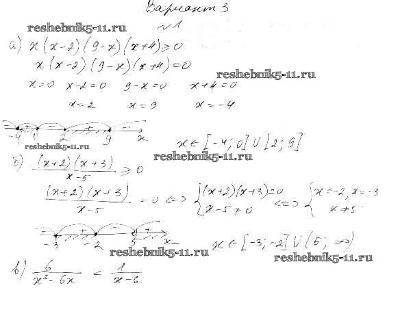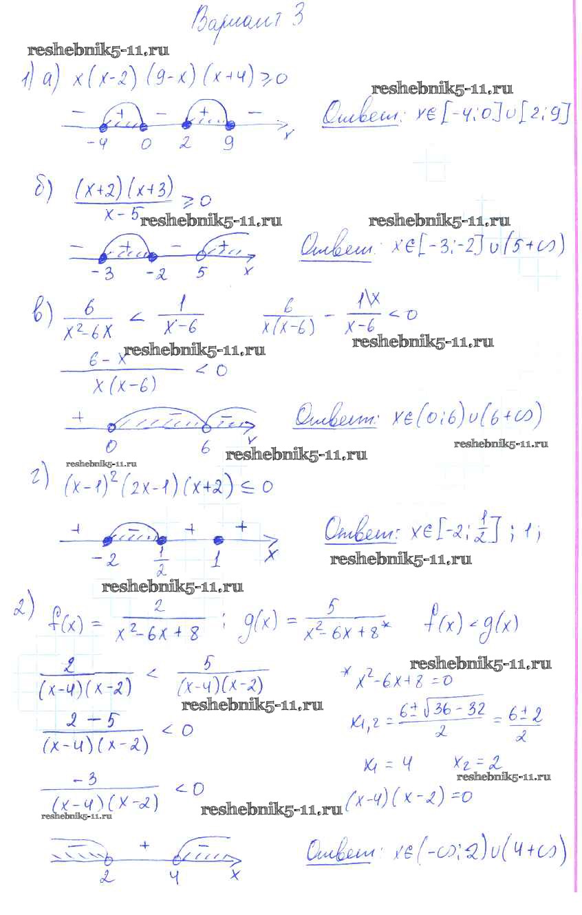 Готовая домашняя работа с ответами по Алгебре за 9 класс Александрова Самостоятельные работы УМК Базовый уровень Мнемозина 2016 ФГОС - СР-3. Рациональные неравенства вариант 3