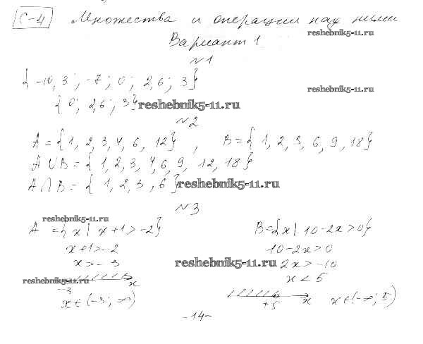 Готовая домашняя работа с ответами по Алгебре за 9 класс Александрова Самостоятельные работы УМК Базовый уровень Мнемозина 2016 ФГОС - СР-4. Множества и операции над ними вариант 1