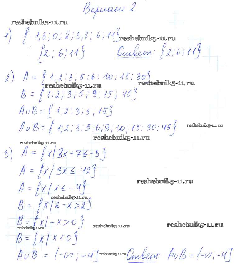 Готовая домашняя работа с ответами по Алгебре за 9 класс Александрова Самостоятельные работы УМК Базовый уровень Мнемозина 2016 ФГОС - СР-4. Множества и операции над ними вариант 2