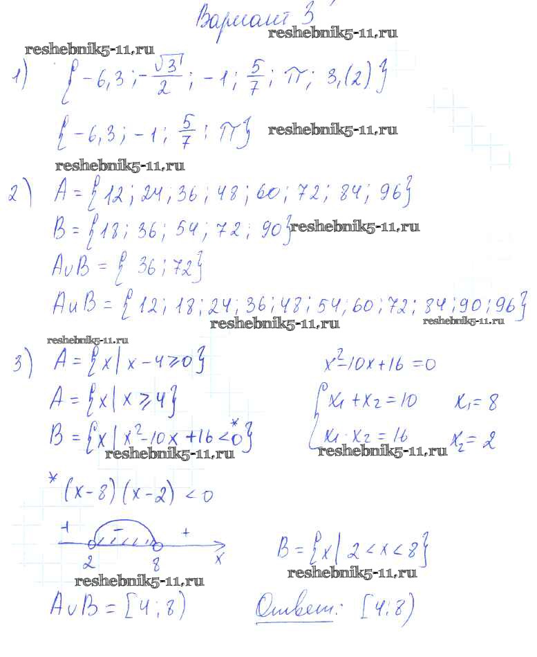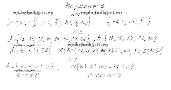 Готовая домашняя работа с ответами по Алгебре за 9 класс Александрова Самостоятельные работы УМК Базовый уровень Мнемозина 2016 ФГОС - СР-4. Множества и операции над ними вариант 3