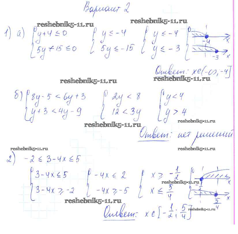 Готовая домашняя работа с ответами по Алгебре за 9 класс Александрова Самостоятельные работы УМК Базовый уровень Мнемозина 2016 ФГОС - СР-5. Системы рациональных неравенств вариант 2