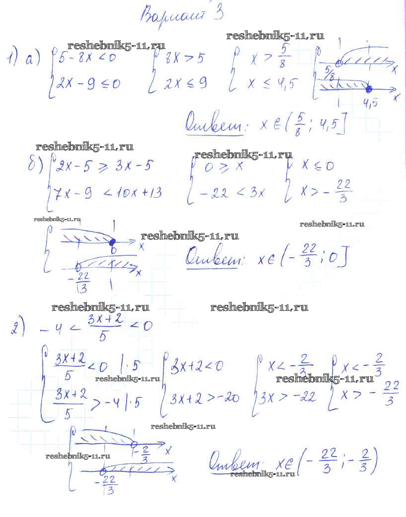 Готовая домашняя работа с ответами по Алгебре за 9 класс Александрова Самостоятельные работы УМК Базовый уровень Мнемозина 2016 ФГОС - СР-5. Системы рациональных неравенств вариант 3