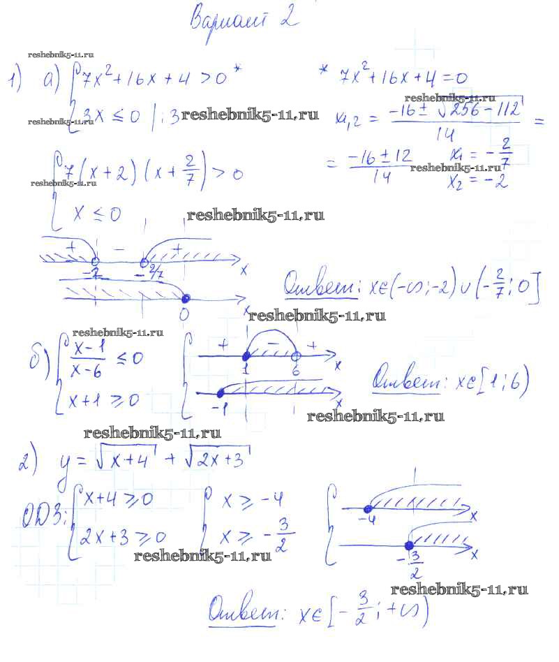 Готовая домашняя работа с ответами по Алгебре за 9 класс Александрова Самостоятельные работы УМК Базовый уровень Мнемозина 2016 ФГОС - СР-6. Системы рациональных неравенств вариант 2