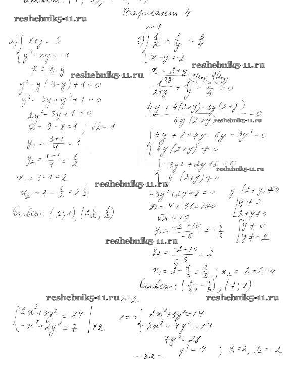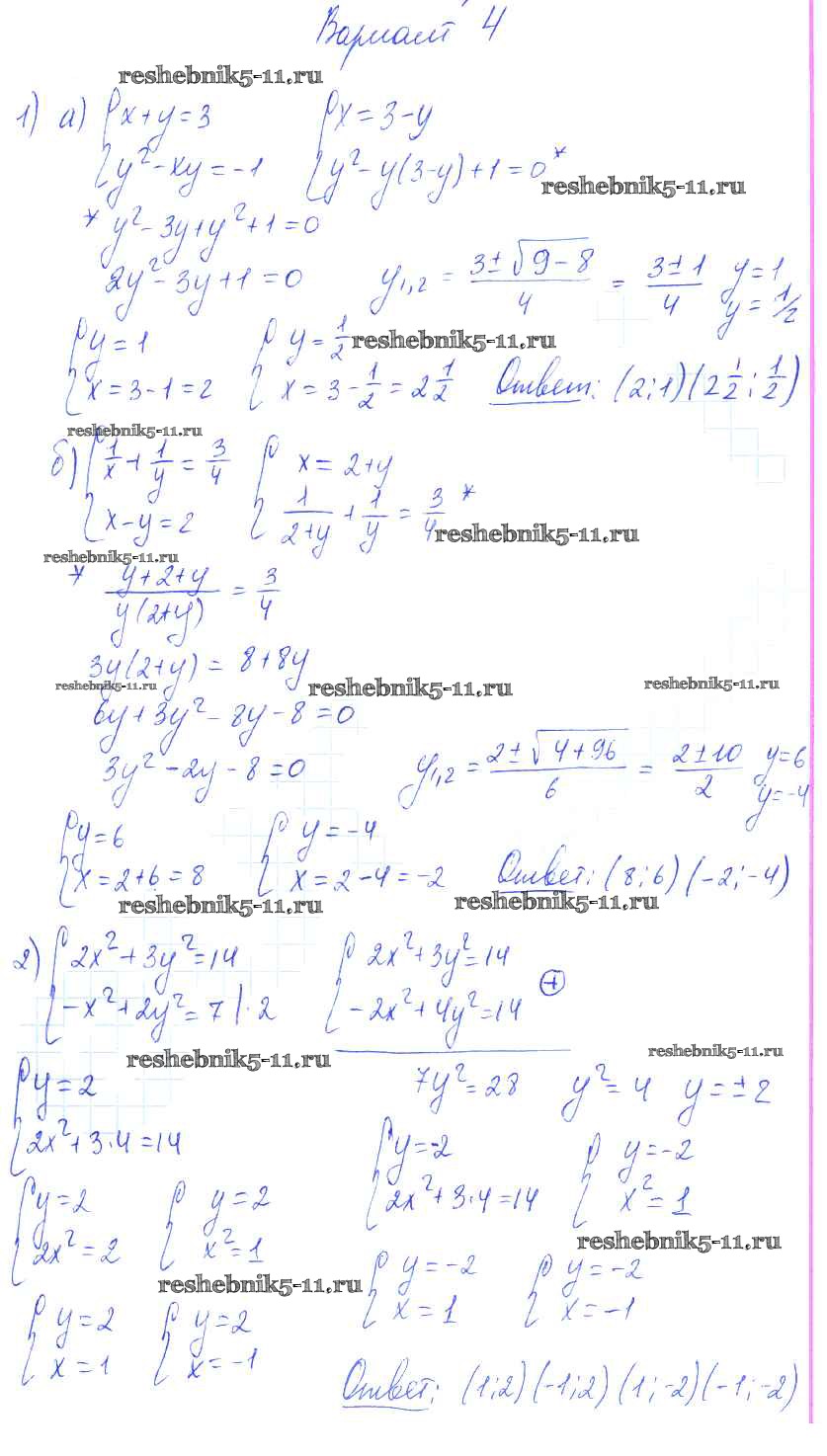 Готовая домашняя работа с ответами по Алгебре за 9 класс Александрова Самостоятельные работы УМК Базовый уровень Мнемозина 2016 ФГОС - СР-8. Методы решения систем уравнений вариант 4