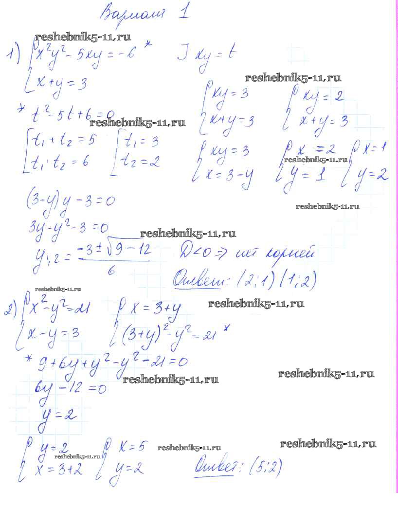 Готовая домашняя работа с ответами по Алгебре за 9 класс Александрова Самостоятельные работы УМК Базовый уровень Мнемозина 2016 ФГОС - СР-9. Методы решения систем уравнений вариант 1