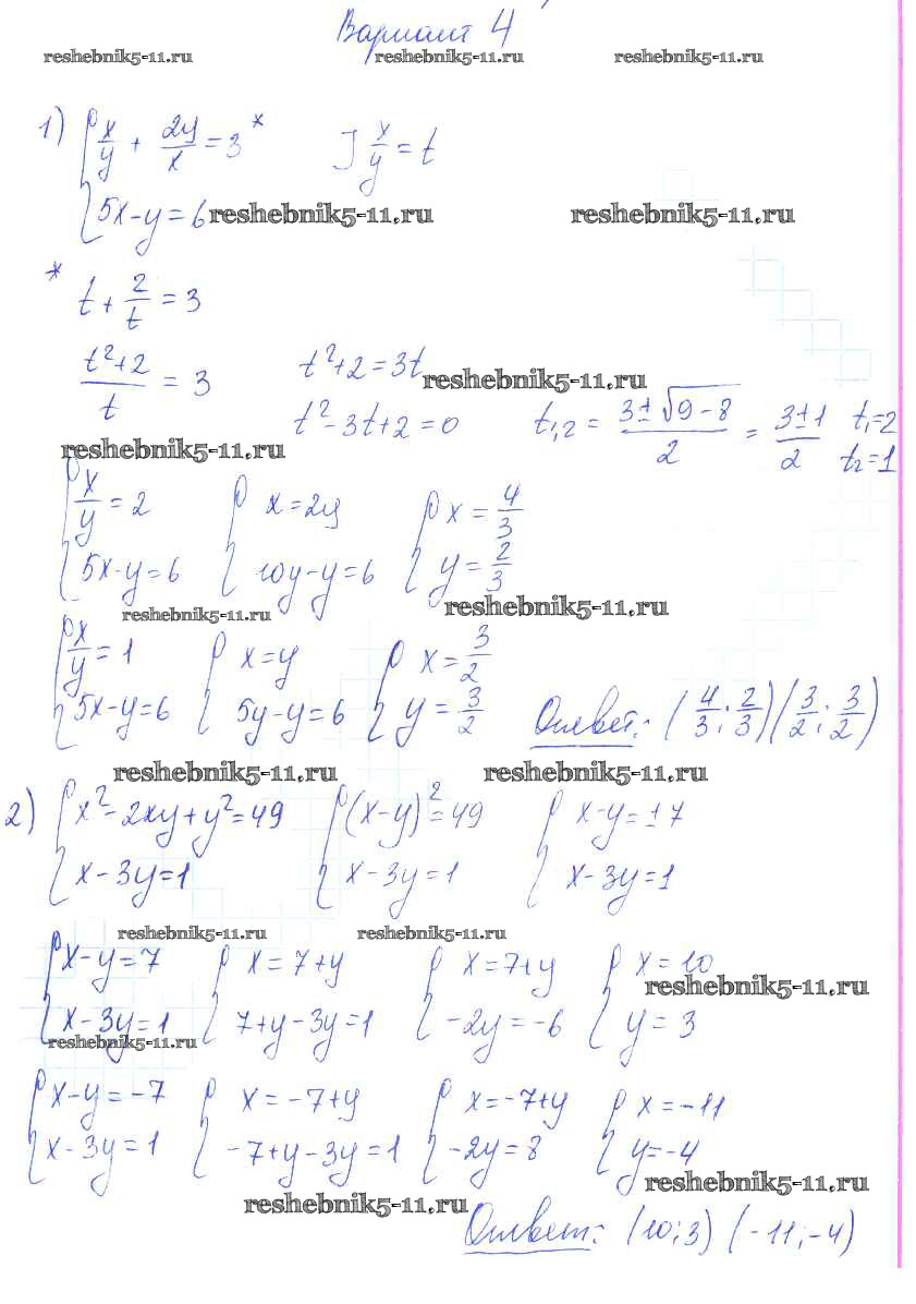 Готовая домашняя работа с ответами по Алгебре за 9 класс Александрова Самостоятельные работы УМК Базовый уровень Мнемозина 2016 ФГОС - СР-9. Методы решения систем уравнений вариант 4