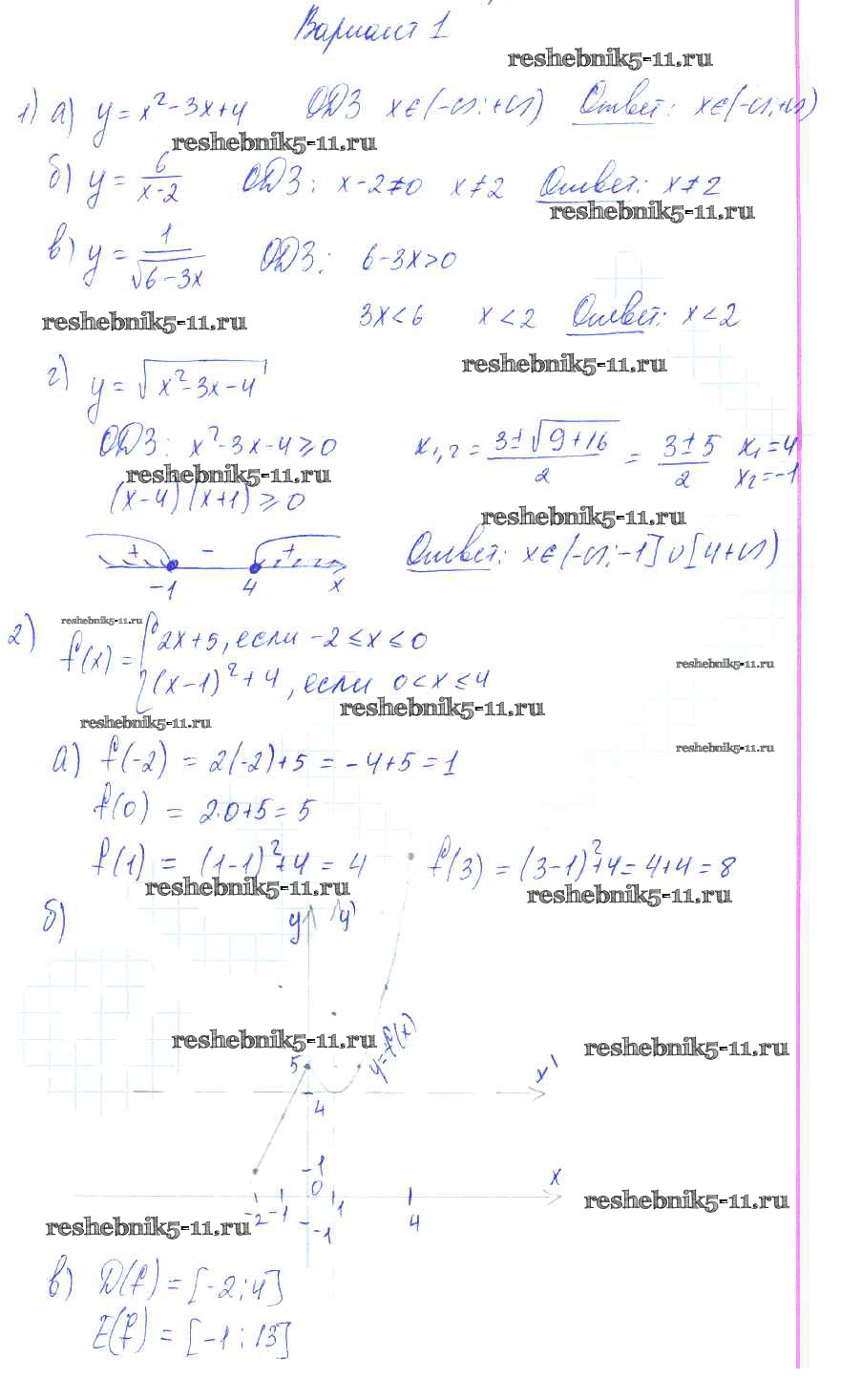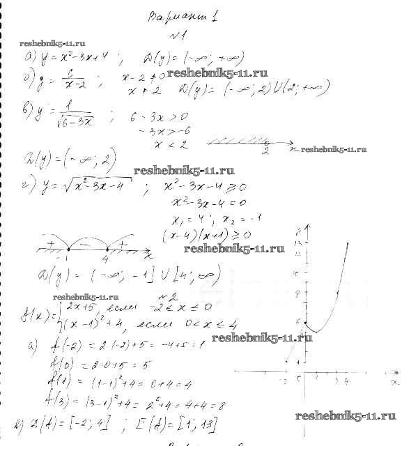 Готовая домашняя работа с ответами по Алгебре за 9 класс Александрова Самостоятельные работы УМК Базовый уровень Мнемозина 2016 ФГОС - СР-11. Определение числовой функции вариант 1