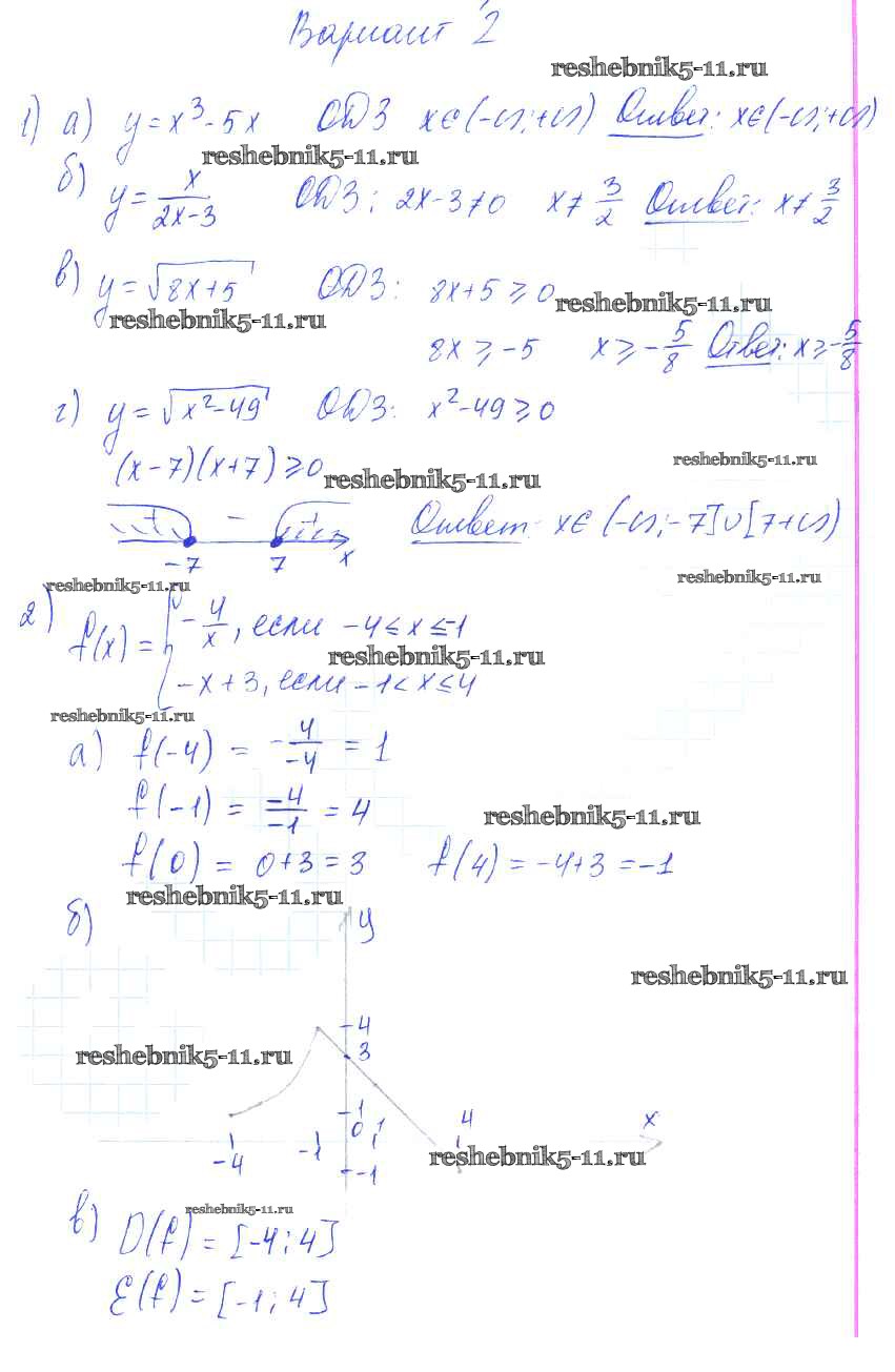 Готовая домашняя работа с ответами по Алгебре за 9 класс Александрова Самостоятельные работы УМК Базовый уровень Мнемозина 2016 ФГОС - СР-11. Определение числовой функции вариант 2