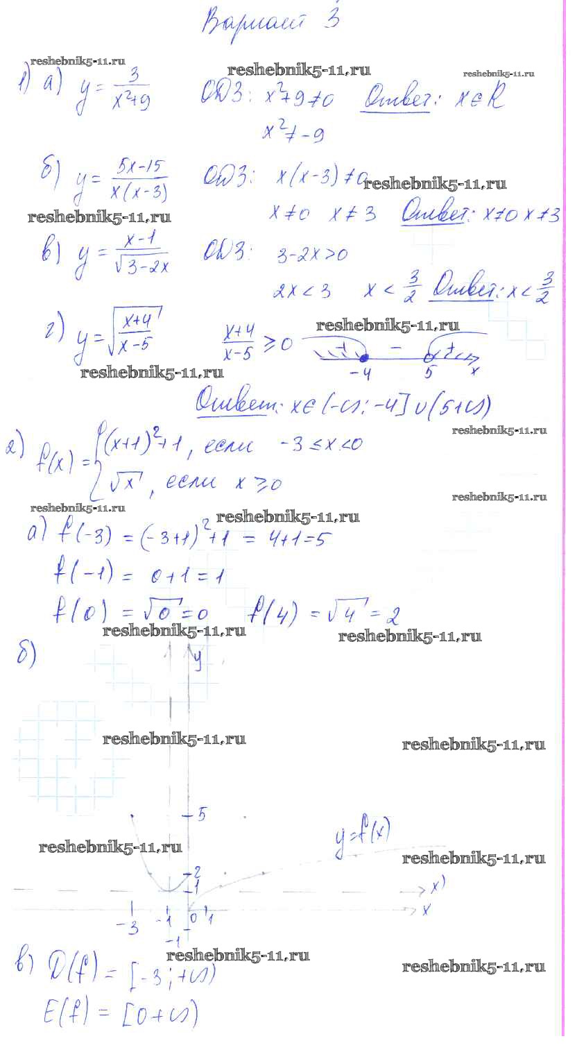 Готовая домашняя работа с ответами по Алгебре за 9 класс Александрова Самостоятельные работы УМК Базовый уровень Мнемозина 2016 ФГОС - СР-11. Определение числовой функции вариант 3