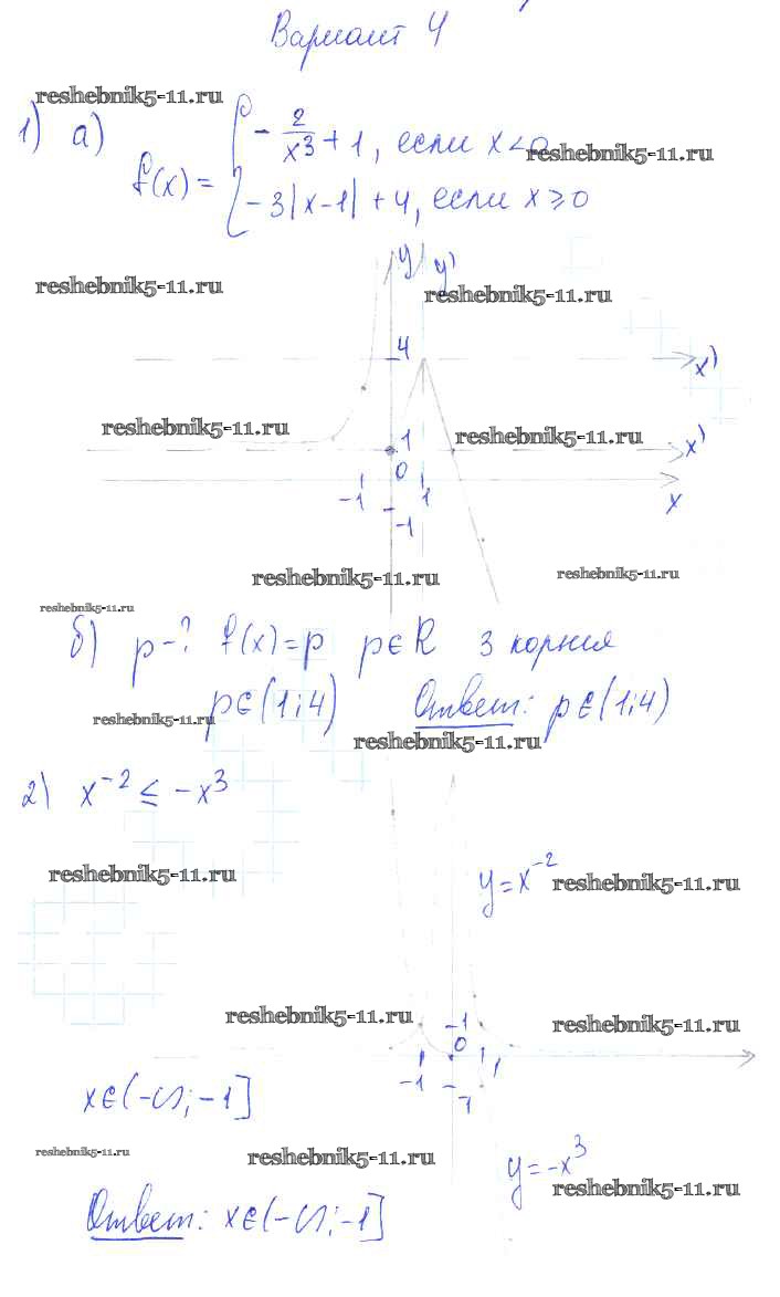 Готовая домашняя работа с ответами по Алгебре за 9 класс Александрова Самостоятельные работы УМК Базовый уровень Мнемозина 2016 ФГОС - СР-20. Функции y=∛x ее свойства и график вариант 4