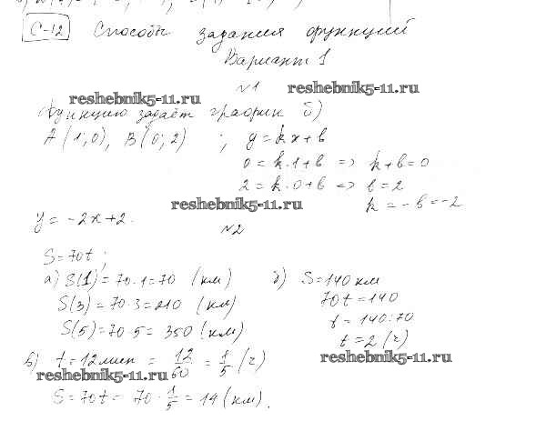 Готовая домашняя работа с ответами по Алгебре за 9 класс Александрова Самостоятельные работы УМК Базовый уровень Мнемозина 2016 ФГОС - СР-12. Способы задания функций вариант 1