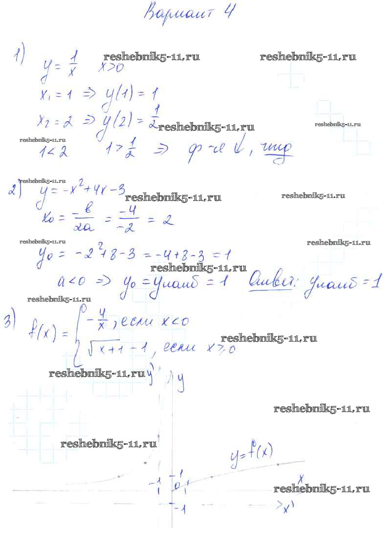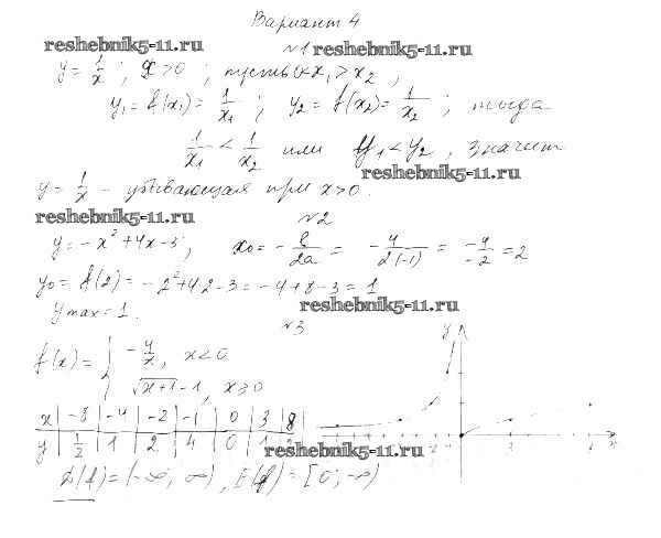 Готовая домашняя работа с ответами по Алгебре за 9 класс Александрова Самостоятельные работы УМК Базовый уровень Мнемозина 2016 ФГОС - СР-13. Свойства функций вариант 4
