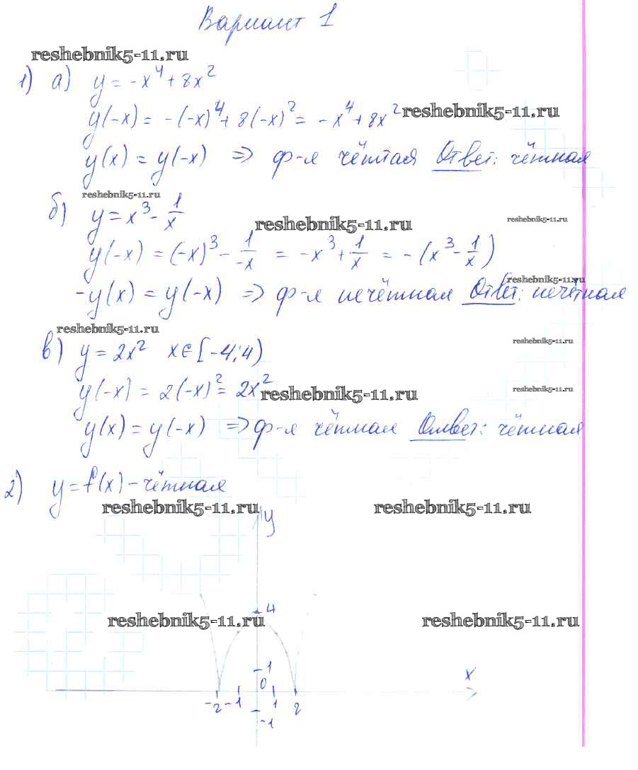 Готовая домашняя работа с ответами по Алгебре за 9 класс Александрова Самостоятельные работы УМК Базовый уровень Мнемозина 2016 ФГОС - СР-14. Четные и нечетные функции вариант 1