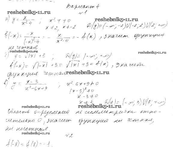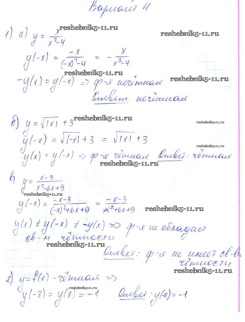 Готовая домашняя работа с ответами по Алгебре за 9 класс Александрова Самостоятельные работы УМК Базовый уровень Мнемозина 2016 ФГОС - СР-14. Четные и нечетные функции вариант 4