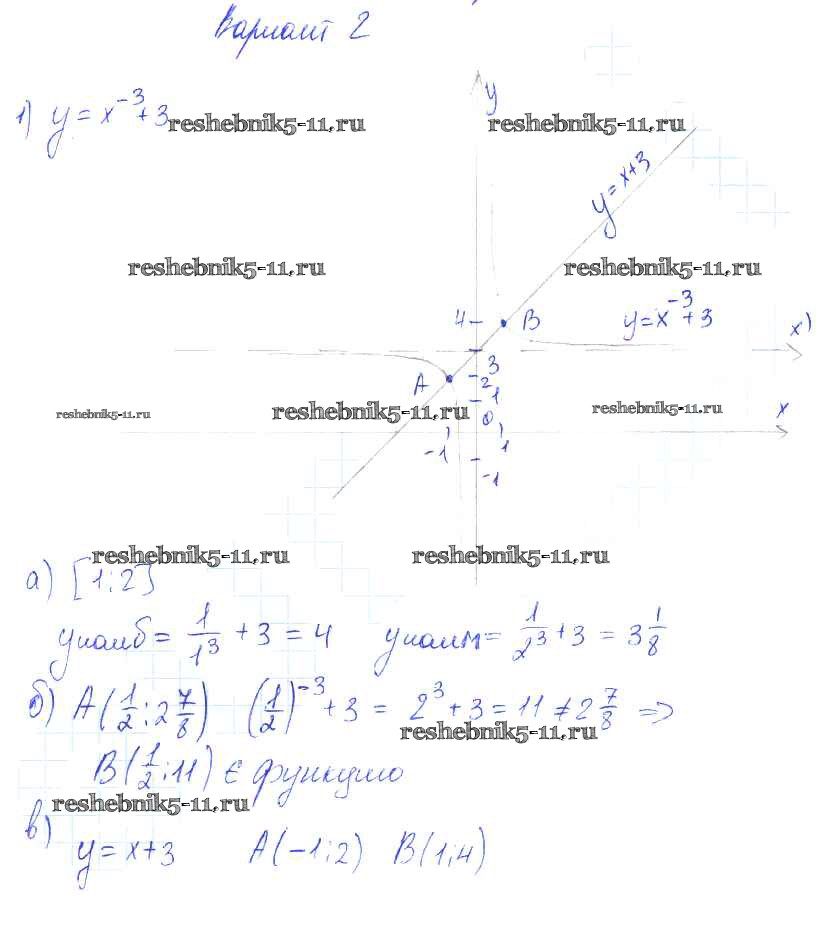 Готовая домашняя работа с ответами по Алгебре за 9 класс Александрова Самостоятельные работы УМК Базовый уровень Мнемозина 2016 ФГОС - СР-17. Функции y=x-n (n ∈ N) их свойства и графики вариант 2