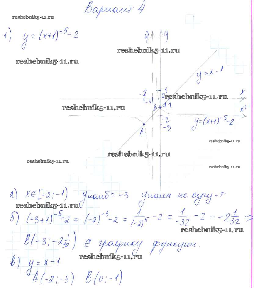 Готовая домашняя работа с ответами по Алгебре за 9 класс Александрова Самостоятельные работы УМК Базовый уровень Мнемозина 2016 ФГОС - СР-17. Функции y=x-n (n ∈ N) их свойства и графики вариант 4