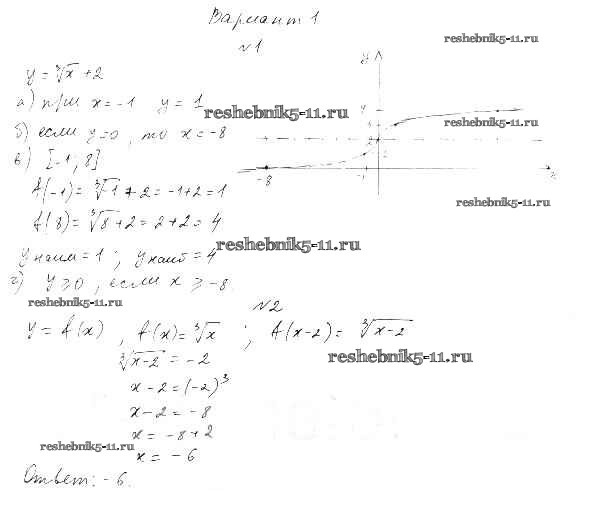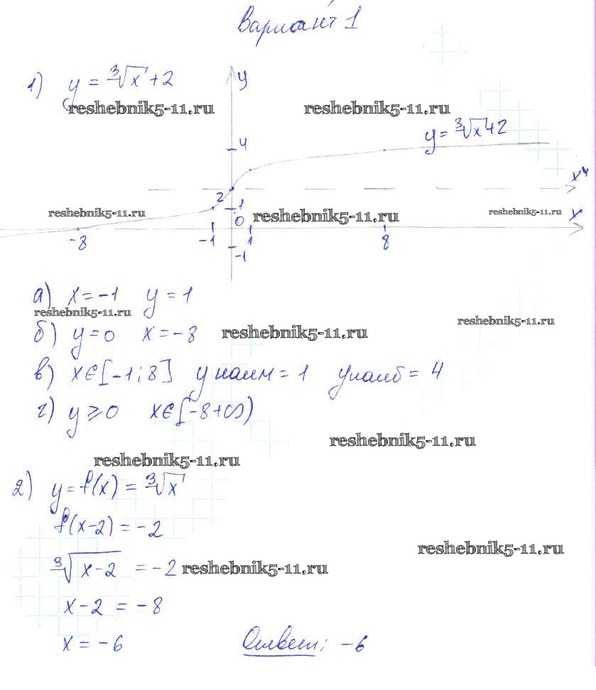 Готовая домашняя работа с ответами по Алгебре за 9 класс Александрова Самостоятельные работы УМК Базовый уровень Мнемозина 2016 ФГОС - СР-19. Функции y=∛x ее свойства и график вариант 1