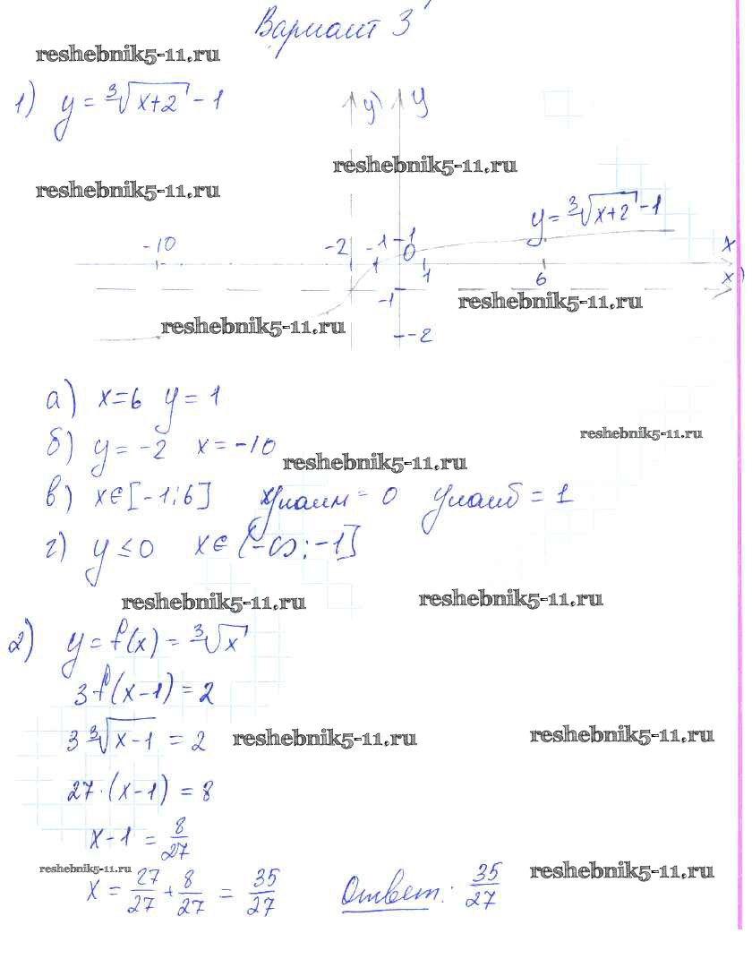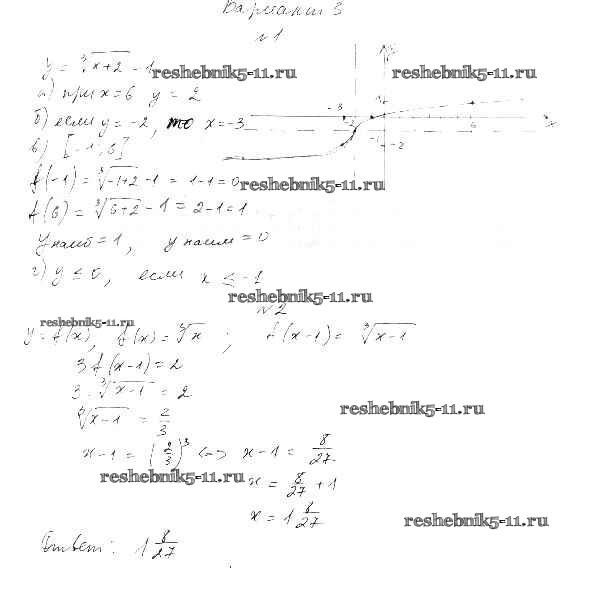 Готовая домашняя работа с ответами по Алгебре за 9 класс Александрова Самостоятельные работы УМК Базовый уровень Мнемозина 2016 ФГОС - СР-19. Функции y=∛x ее свойства и график вариант 3