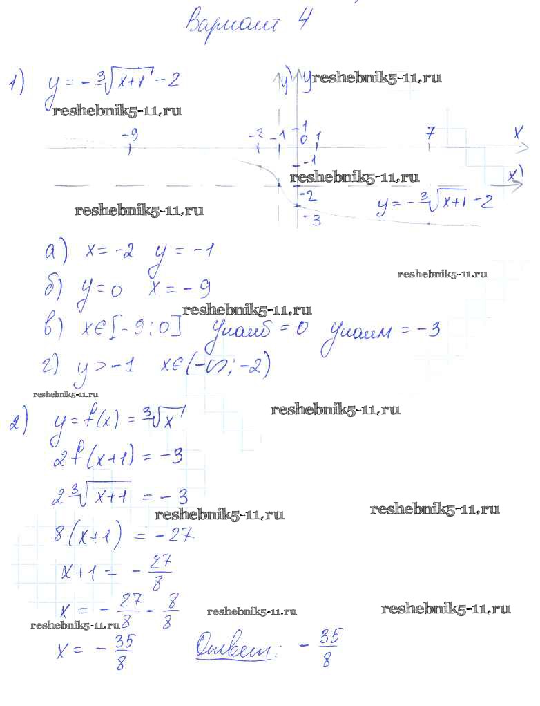 Готовая домашняя работа с ответами по Алгебре за 9 класс Александрова Самостоятельные работы УМК Базовый уровень Мнемозина 2016 ФГОС - СР-19. Функции y=∛x ее свойства и график вариант 4