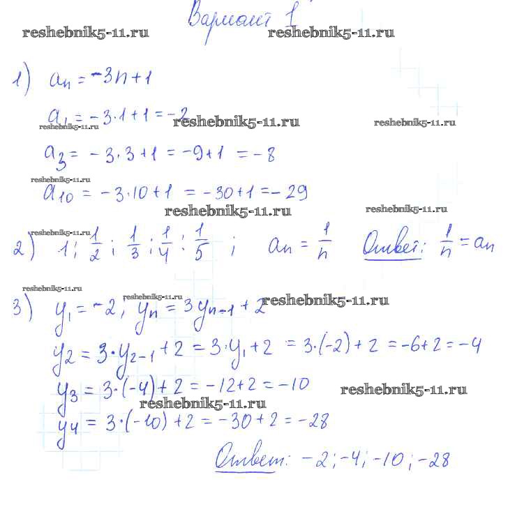 Готовая домашняя работа с ответами по Алгебре за 9 класс Александрова Самостоятельные работы УМК Базовый уровень Мнемозина 2016 ФГОС - СР-21. Числовые последовательности вариант 1
