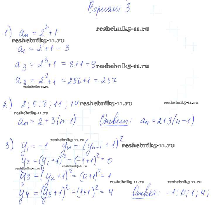 Готовая домашняя работа с ответами по Алгебре за 9 класс Александрова Самостоятельные работы УМК Базовый уровень Мнемозина 2016 ФГОС - СР-21. Числовые последовательности вариант 3