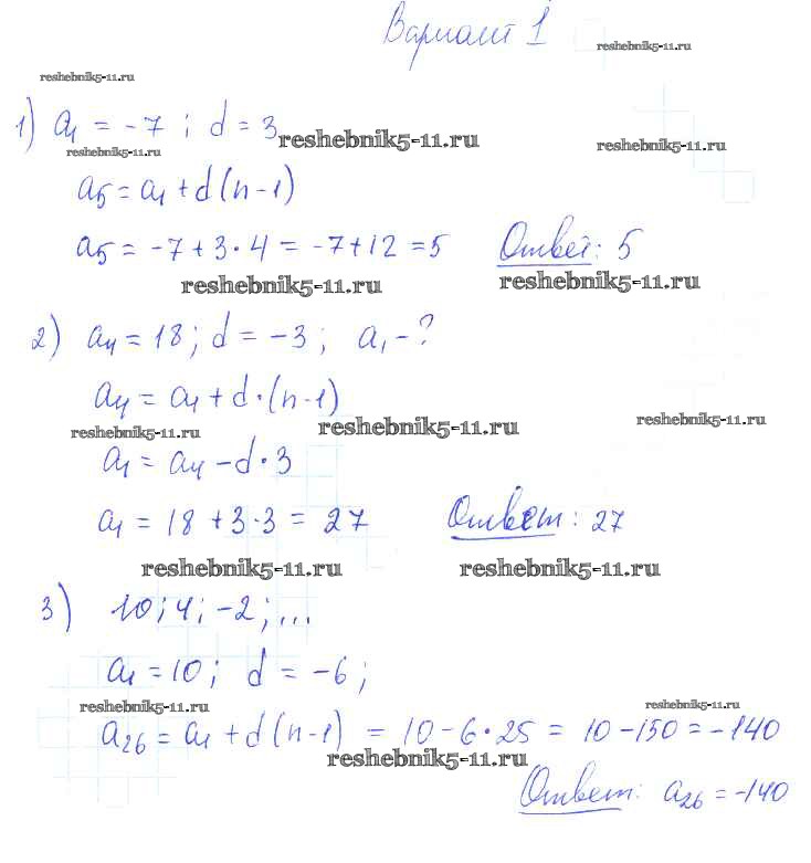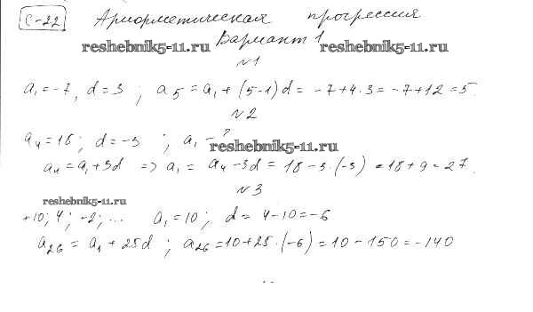 Готовая домашняя работа с ответами по Алгебре за 9 класс Александрова Самостоятельные работы УМК Базовый уровень Мнемозина 2016 ФГОС - СР-22. Арифметическая прогрессия вариант 1